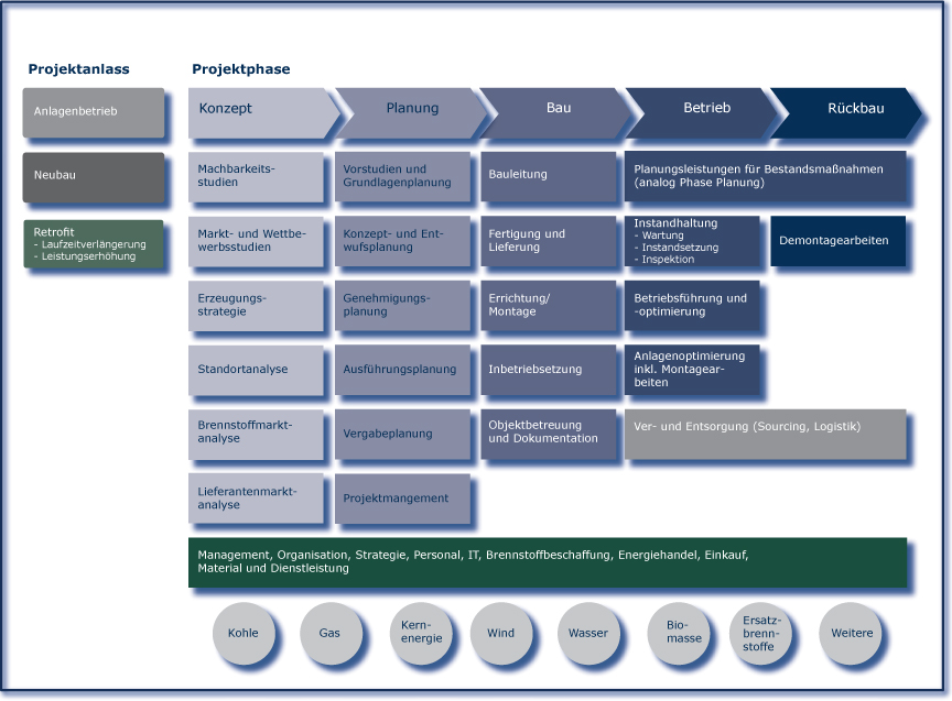 Die Leistungen erstrecken sich entlang der gesamten aufgezeigten Prozesskette: